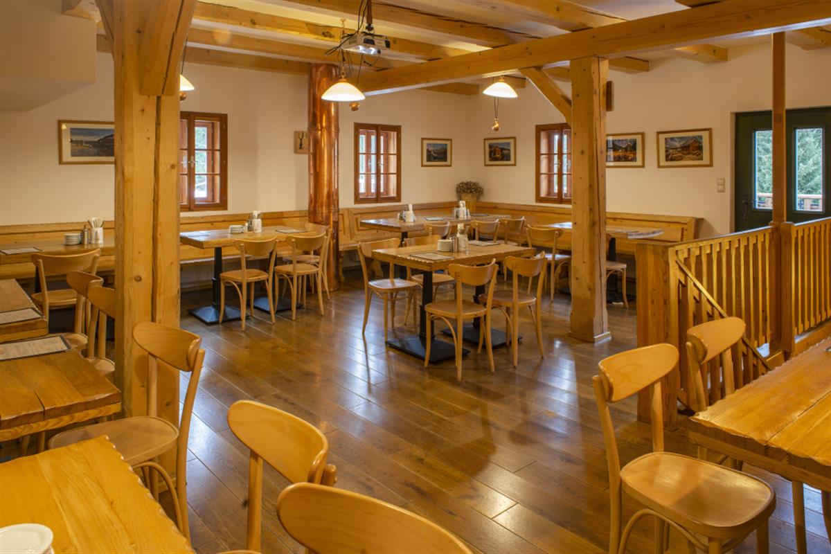 Restaurace využívá lokálních sezonních potravin a vlastního hovězího masa z ekologické biofarmy Lyer. Vždy se tak můžete stoprocentně spolehnout na kvalitu podávaných jídel.